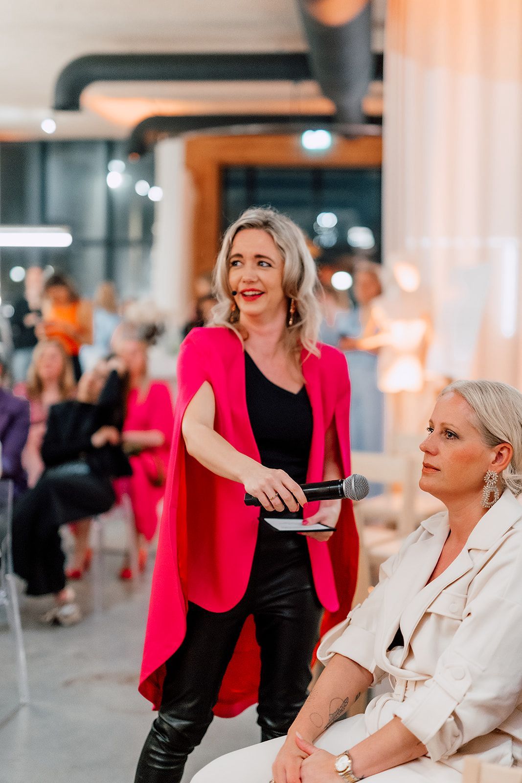 Leer krachtig te spreken met een pakkende talk op het podium! Of boek Valentine als spreker en talkshow host.
